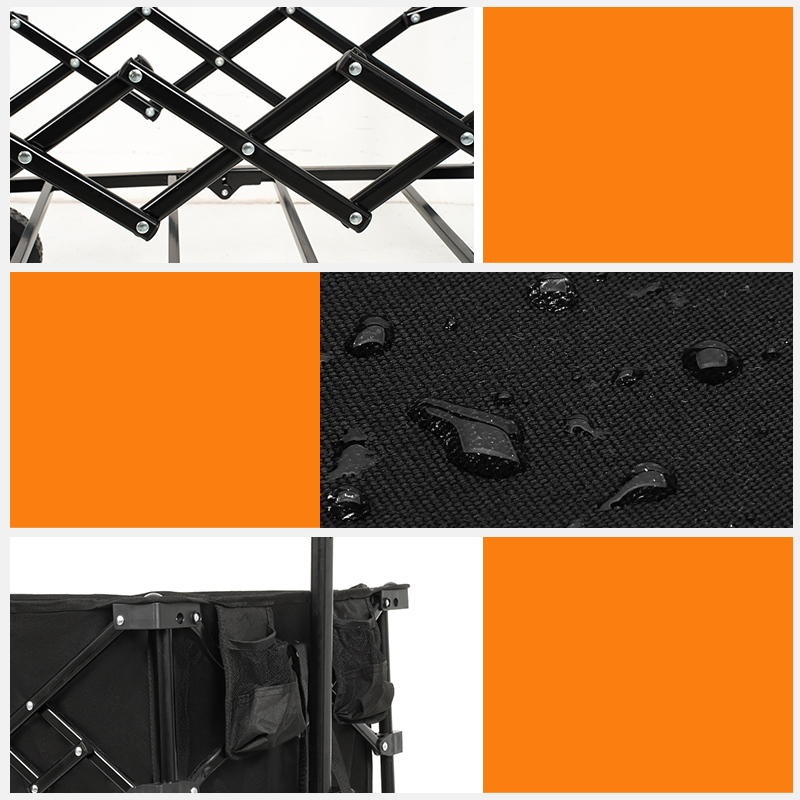 تعد العربة العالمية القابلة للطي ذات الفتح الخلفي حلاً متعدد الاستخدامات ومتينًا لعشاق الهواء الطلق الذين يحتاجون إلى خيار نقل موثوق وواسع. بفضل سعتها الكبيرة التي تبلغ 200 لتر وتصميمها القابل للطي وبنيتها القوية، فإنها تجعل حمل معدات التخييم أو مستلزمات النزهة أو المعدات الثقيلة أمرًا سهلاً. تم تصميم هذه العربة لتوفير الراحة والكفاءة، فهي تجمع بين ميزات التخزين الذكية والمواد عالية القوة والقدرة على المناورة السلسة لتوفير الوقت وتقليل الجهد في أي مغامرة.